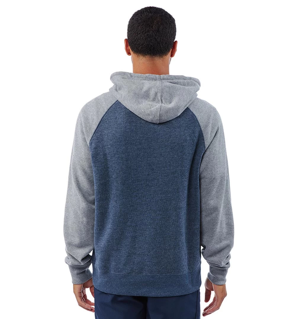 Soft, french terry raglan sleeve hoodie is perfect for post workout wear.