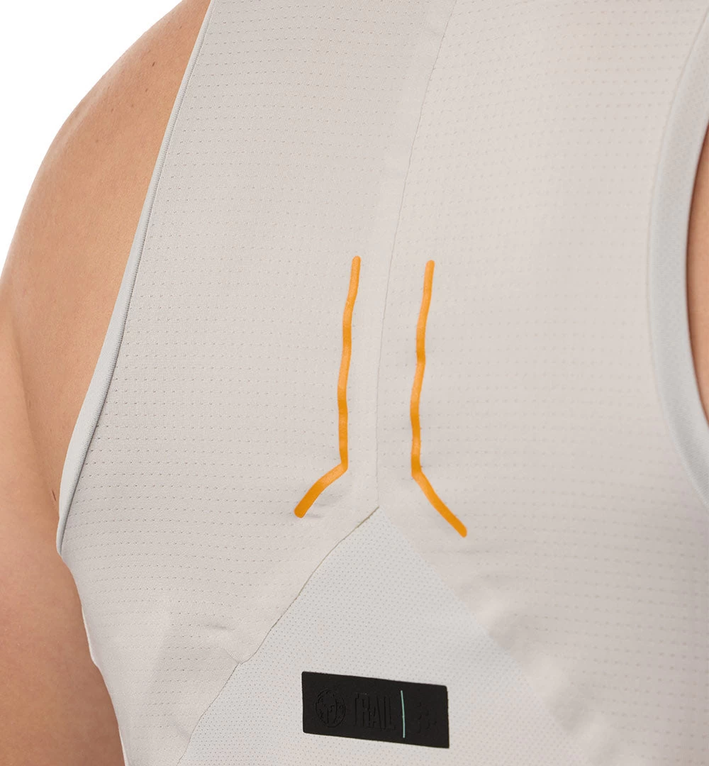 Lightweight running singlet that ensures superior ventilation and comfort during both high speed and long distance running.