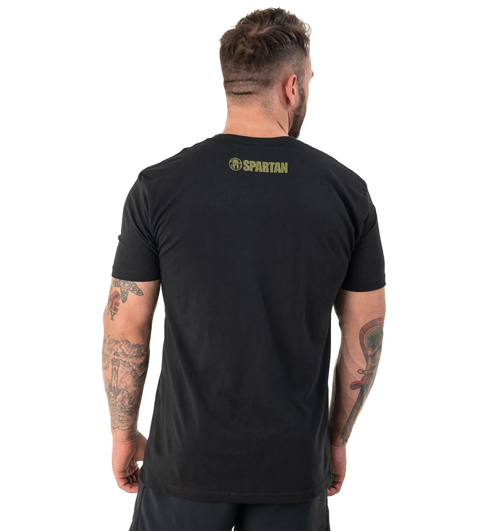 A shirt that honors America with the Spartan shield behind the flag.